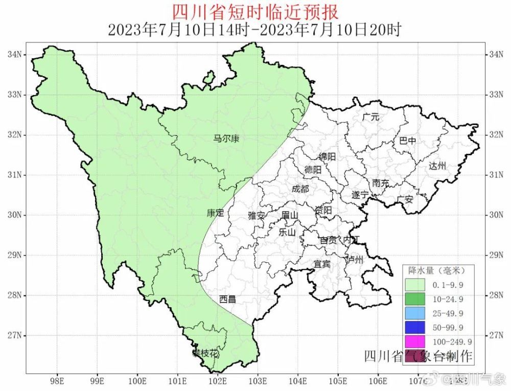 2023年7月10日14时四川省气象台发布短时临近预报: