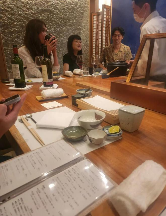 7月4日深夜,有网友在日本某餐厅用餐时偶遇林志玲与Akira,夫妇俩邀约友人一同前来相聚,餐馆选择清幽舒适,仅能容纳不到十位客人。