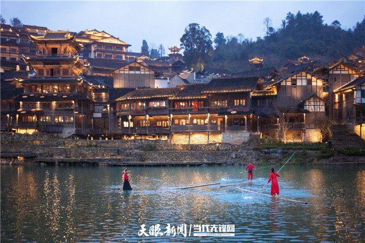 在这里,黔北文化、非遗表演、生活场景,在寨子里的石巷间与水面上轮番上演,自然风光和黔北民俗风情交相辉映,宛若世外桃源,游客既能欣赏乌江寨山水之美,也能沉浸式感受非遗文化的魅力。