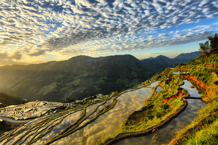 加榜梯田被誉为“大地的指纹”“深山里的诗行”,是全球农业文化遗产保护地,有着“农耕文化博物馆”“中国四大最美梯田之一”“贵州十大梯田”之首、“国家梯田公园”的美称。