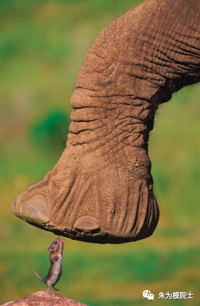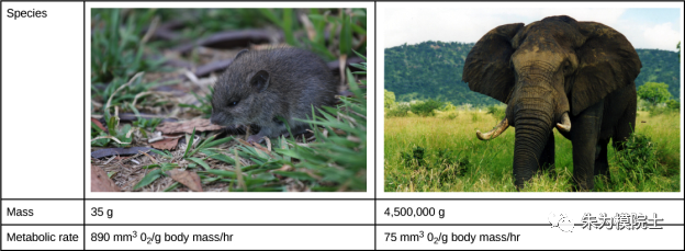 以每克每小时体重的能量消耗计,只有35克的小鼠的能耗和4500公斤大象的对比。