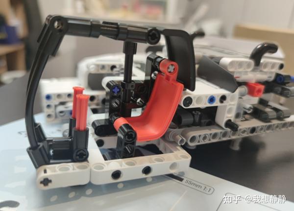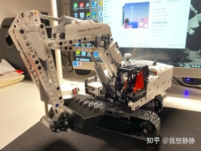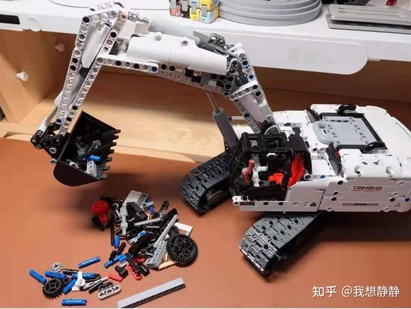 而且它还有仿真控制台装置,可以控制机械臂和铲斗,控制手柄虽小,但非常灵敏,机械臂抬升伸缩自如,拼成之后男朋友趴在地上捏着控制手柄玩得不亦乐乎,活脱脱就是一个小孩子哈哈哈
