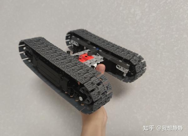 它采用履带式行进方式(是真的能走的那种哦),有仿液压装置作为动力输出核心,履带组件用轻质高强度材料制作,还有加强防滑筋,模拟挖掘机的抓地力,上坡、越障都不在话下,它第一次行进的时候我看到男朋友兴奋得眼睛几乎在放光~