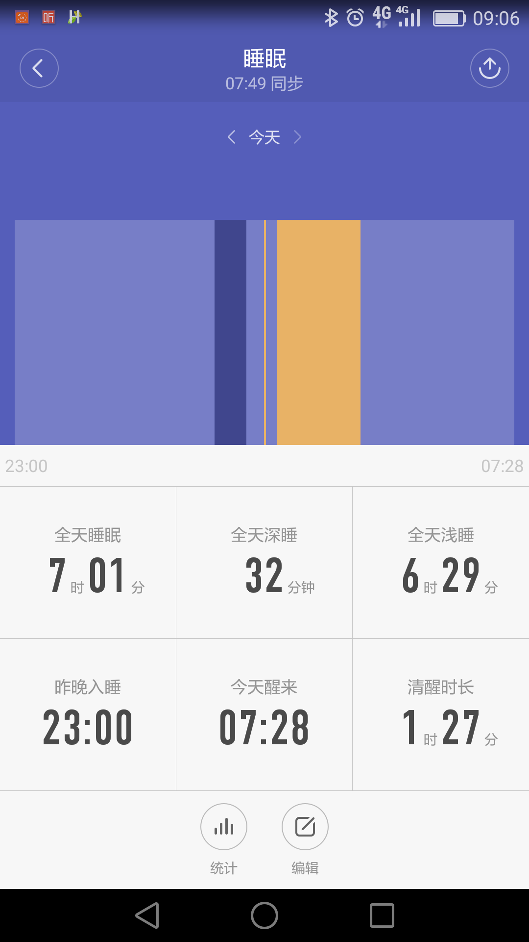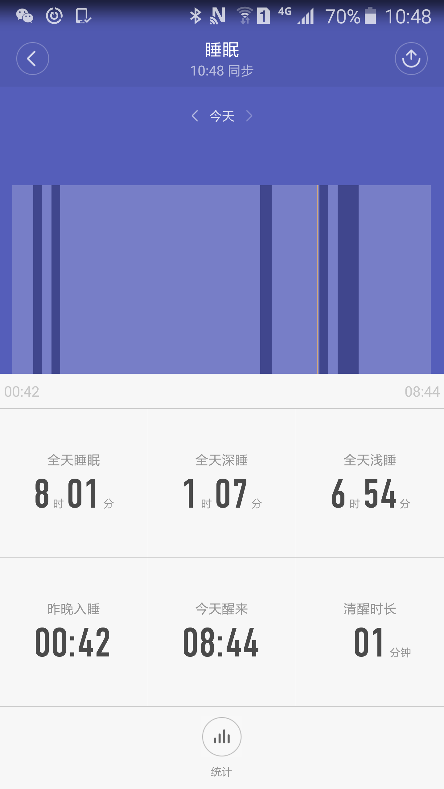 看到你的睡眠统计简直是让我羡慕死了,这是我昨天的,深睡眠只有1个小时,中间还有清醒的时候,医院睡眠监测是连接多导睡眠监测的,主要是看脑电和肌电来断定睡眠状态,这个手环主要是靠你有没有活动来断定睡眠状态。