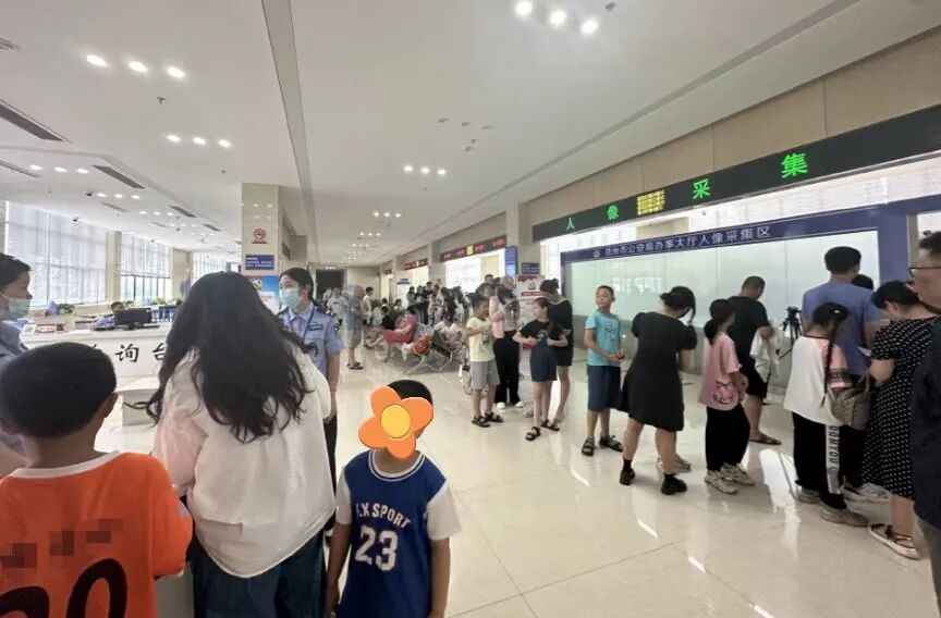 7月14日,在池州市政务服务中心公安窗口,人像采集室外排着长长的队伍,大多是家长带着孩子来办理未成年人身份证证件。