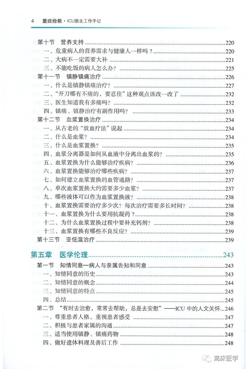 第一节 循环系统一、休克二、急性心力衰竭三、常见心律失常五、心肺复苏六、高血压危象第二节 呼吸系统一、呼吸衰竭二、重症肺炎三、重症哮喘四、急性呼吸窘迫综合征五、肺栓塞六、气道梗阻第三节 泌尿系统急性肾损伤第四节 消化系统一、急性重症胰腺炎二、急性肝衰竭三、消化道大出血四、胃肠功能障碍第五节 中枢神经系统一、意识障碍和脑死亡二、急性颈脊髓损伤第六节 血液系统一、弥散性血管内凝血二、创伤性凝血病第七节 其他一、多器官功能不全综合征二、ICU中的严重感染三、产科急重症四、多发创伤五、急性中毒第四章 ICU常用监测手段和治疗措施第一节 ICU救命的法宝——ICU监护治疗一、监护治疗的发展史二、在ICU常见的监护设备有哪些?各有什么特点?第二节 ICU病人为什么要进行血流动力学监测一、什么是血流动力学?二、简单的血流动力学指标有哪些?三、复杂的血流动力学监测技术有哪些?四、血流动力学监测的意义