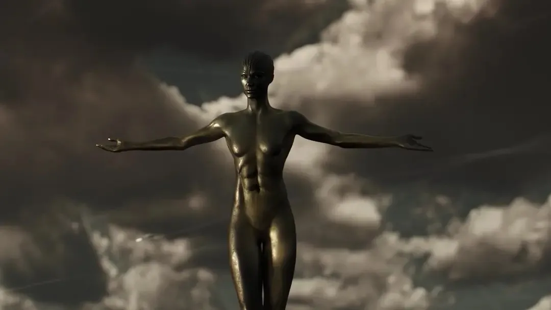 作为一个杀伤性武器机器人,变身后的Mother展现出无性征的接近神性的威权感。