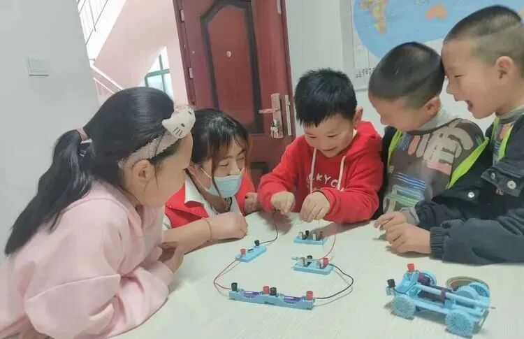 活动中,志愿者给孩子们拿出不同年龄的科学教具:有益智橡皮筋钉板几何教具、科学发现室玩具三维立体模型、科学电器实验器材、益智跳棋等,并逐一讲解操作方法及各类科学小常识。孩子们认真倾听,自己动手操作,体验了各种科普器材,深刻领略到科学的奥妙。“哇~小车自己跑起来了!”“哈哈,看这个红.黄.绿灯都亮了呢!”“阿姨,看我做的图形,棒不棒!”“我的小手掌出来了,你看你看~”孩子们脸上洋溢着开心的笑容,认真探索科技的魅力!