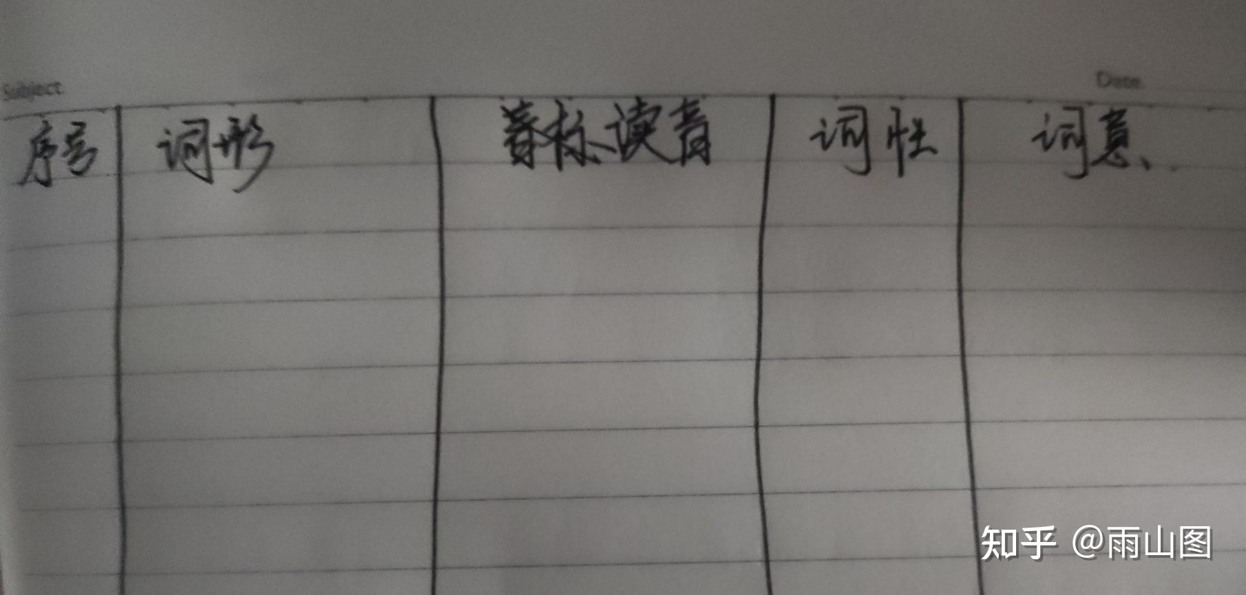 我们老师当时经常提问单词,就是每个人拿着自己的笔记本去找他背,所以我的单词当时背了好多好多遍,就是怕老师提问。我当时大概就是下面这样的形式(没找到原来的笔记本,我记了大半个本子的,忘了丢哪了 )。