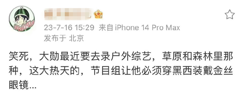 有网友透露,魏大勋近期接了一档户外综艺,在草原和森林等地方,魏大勋还得被要求穿西服戴金丝眼镜,继续以“孟宴臣”的形象营业。