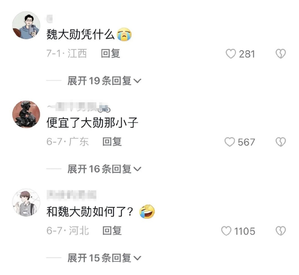 所以,前段时间秦岚社交账号的评论区里,基本上都是各种对魏大勋的吐槽,质疑他到底何德何能。