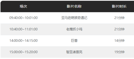 观影务必提前网上预约,新片《老鹰抓小鸡》免费向公众放映;周三至周日每天上下午各放映两场,放映影片如下: