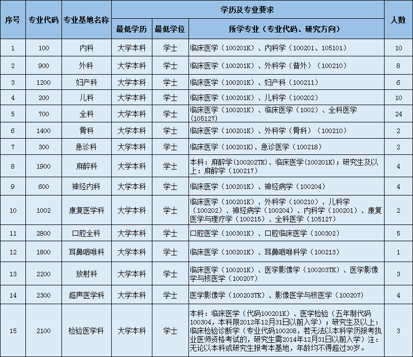 2、学历要求必须为全日制大学本科及以上学历,通过英语四级(425分及以上),口腔全科专业要求通过英语六级(425分及以上);