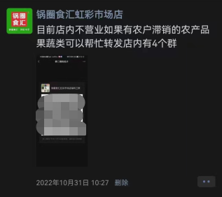 随着疫情的蔓延,门店和市场也采取了封控管理,但常春丽夫妇并没有放弃为周边居民提供帮助,她将自己的四个群作为保供爱心渠道,帮助那些有滞销产品的农户进行宣传,既解决农户的滞销问题又解决居民物资的保障。