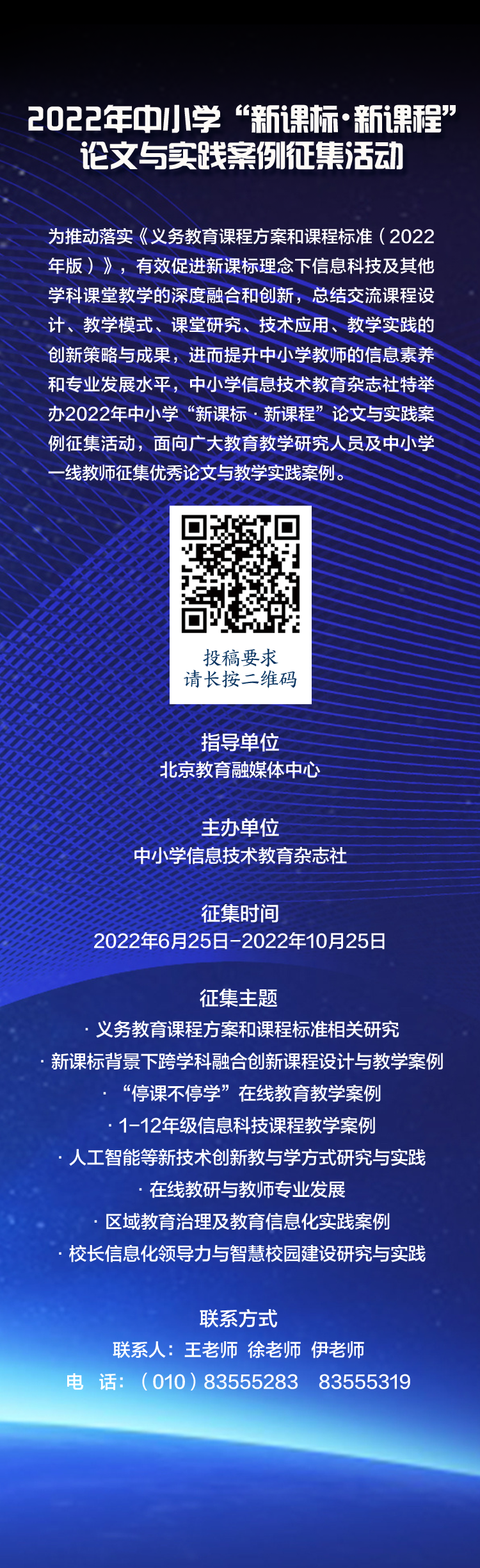 2022年4月颁布的《 义务教育信息科技课程标准》 中指出:要以真实问题或项目驱动, 引导学生经历原理运用、 计算思维和数字化工具应用过程, 构建知识, 提升问题解决能力, 引导学生在使用信息科技解决问题的过程中遵循道德规范和科学伦理, 培育学生正确的世界观、 人生观、 价值观。