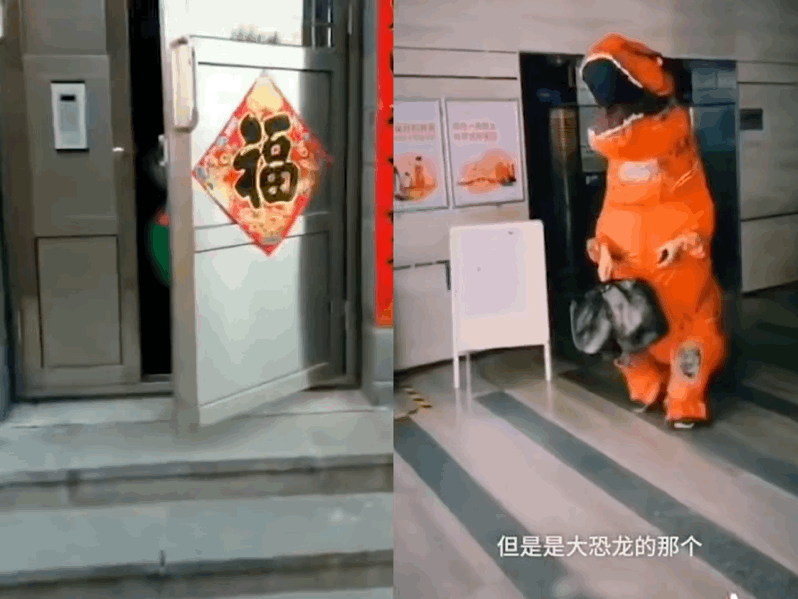 穿上充气玩偶服当防护服的“大朋友”,让紧张的特殊时期,多了一些可可爱爱...