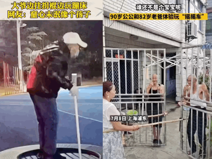 拄着拐杖玩蹦床,把家里大门当摇摇车...