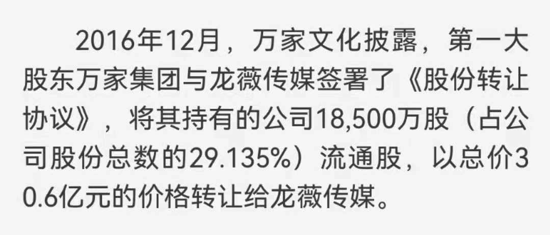 原来在2016年时,赵薇的龙薇传媒投资万家文化,想要以6000万撬动30.6亿元的。