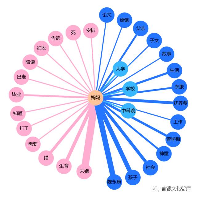 另外需要注意的是,“母亲”也和一些负性词语相关,比如关联度非常高的“未婚”,以及“死”“错”等,从一定程度上体现出在社会转型期这一家庭角色面临的压力。