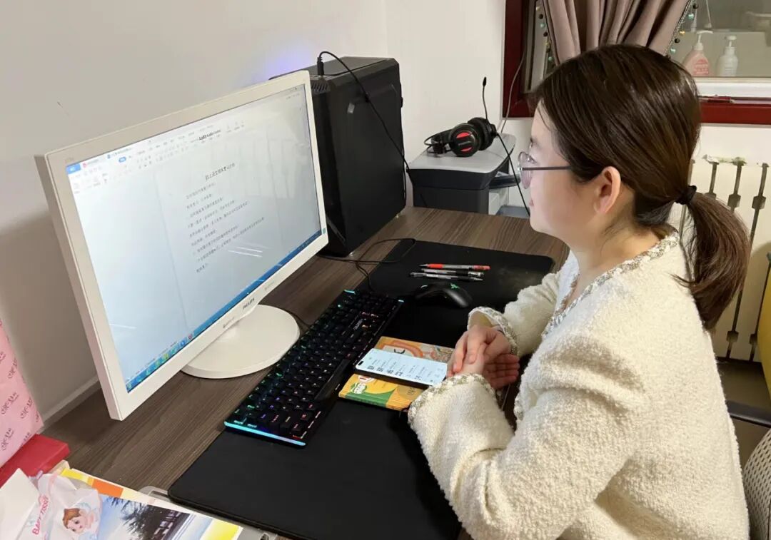 每节课课前,我都会提前三到五分钟进入课堂。有时候会播放舒缓的钢琴曲或时下学生爱听的流行乐曲,等待同学们的到来,而提前进入的学生们则喜欢在聊天互动区与我交流,比如分享自己的生活趣事,或表达对老师的思念之情,我看到之后就会对每一个孩子做出回应。不论是一句简单的“老师好”,还是一句真挚的“老师,一个月没见了,我真想你!”我都会回应孩子们,或者通过连麦的方式和孩子们交流,关心学生的生活,给予学生鼓励。
