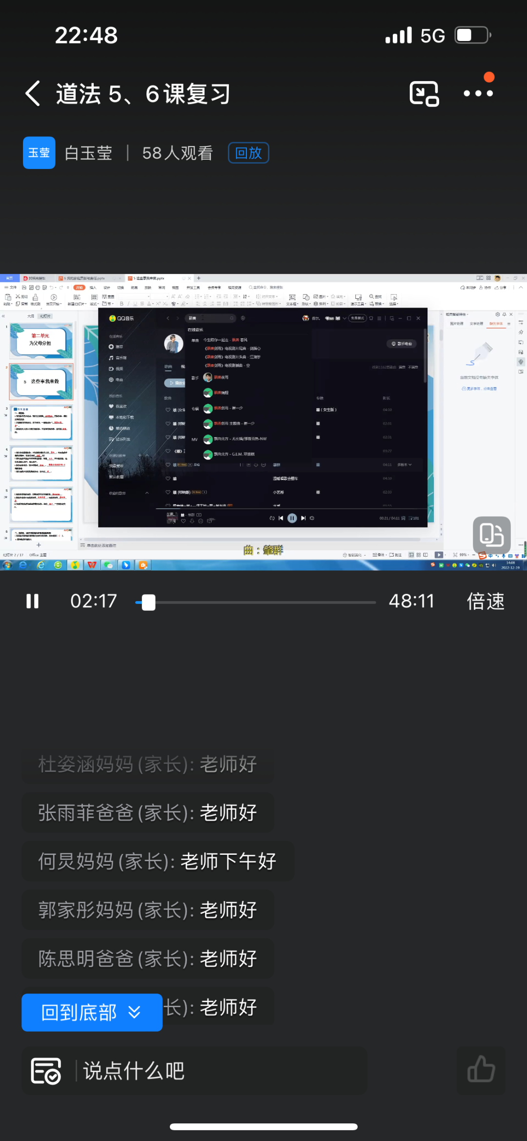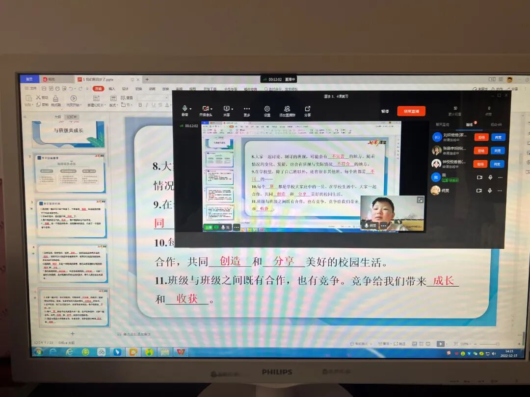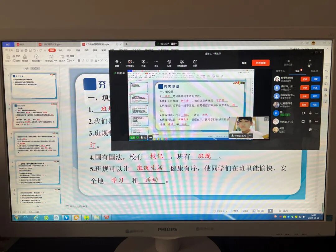 我还会利用腾讯视频会议,使屏幕从一种相隔的阻碍变成直观展示的平台。比如,每周一三五早读课,我会创建20分钟会议,要求学生全部打开摄像头和声音,随机互动,抽查背诵情况,学生也能看见老师,彼此之间增进了更多的亲近感,也增加了许多与学生正面交流的机会。