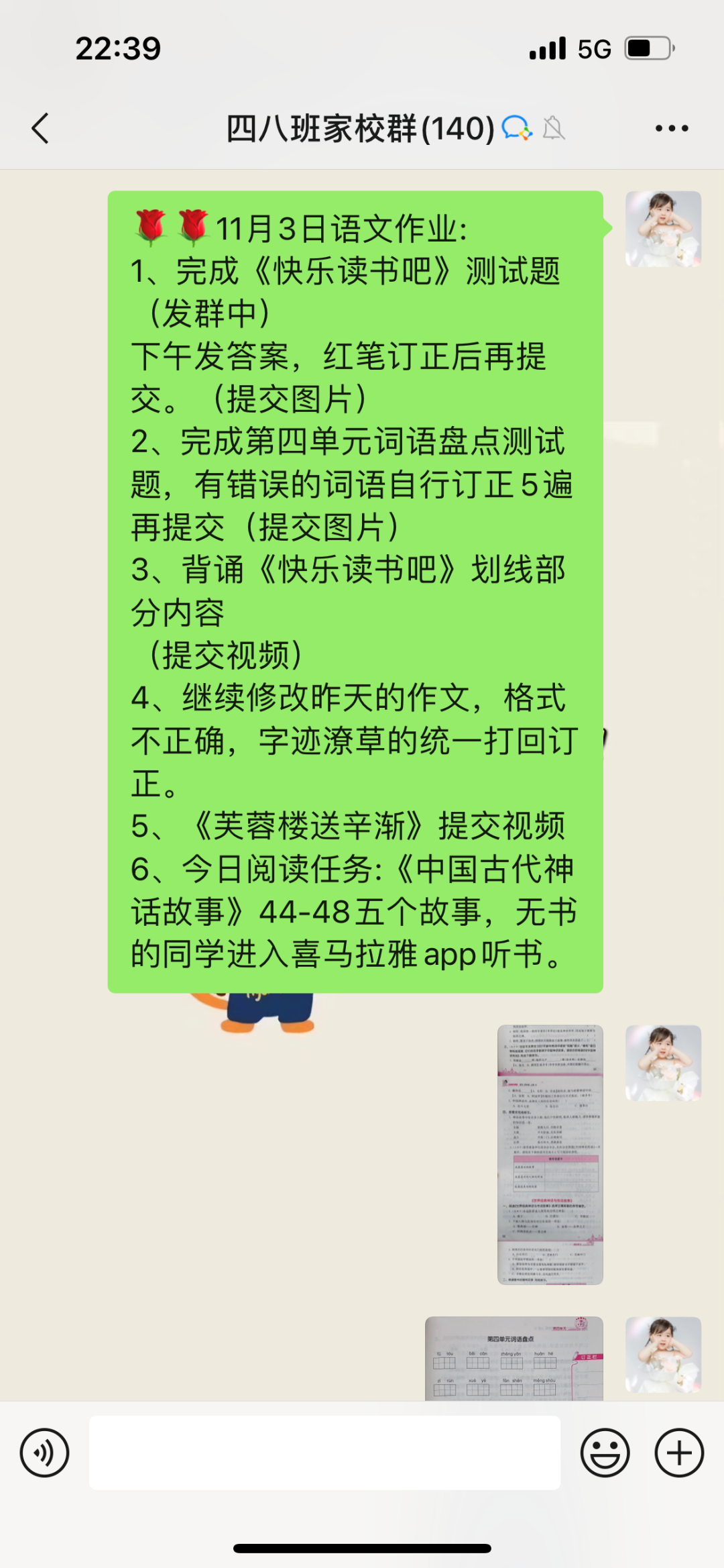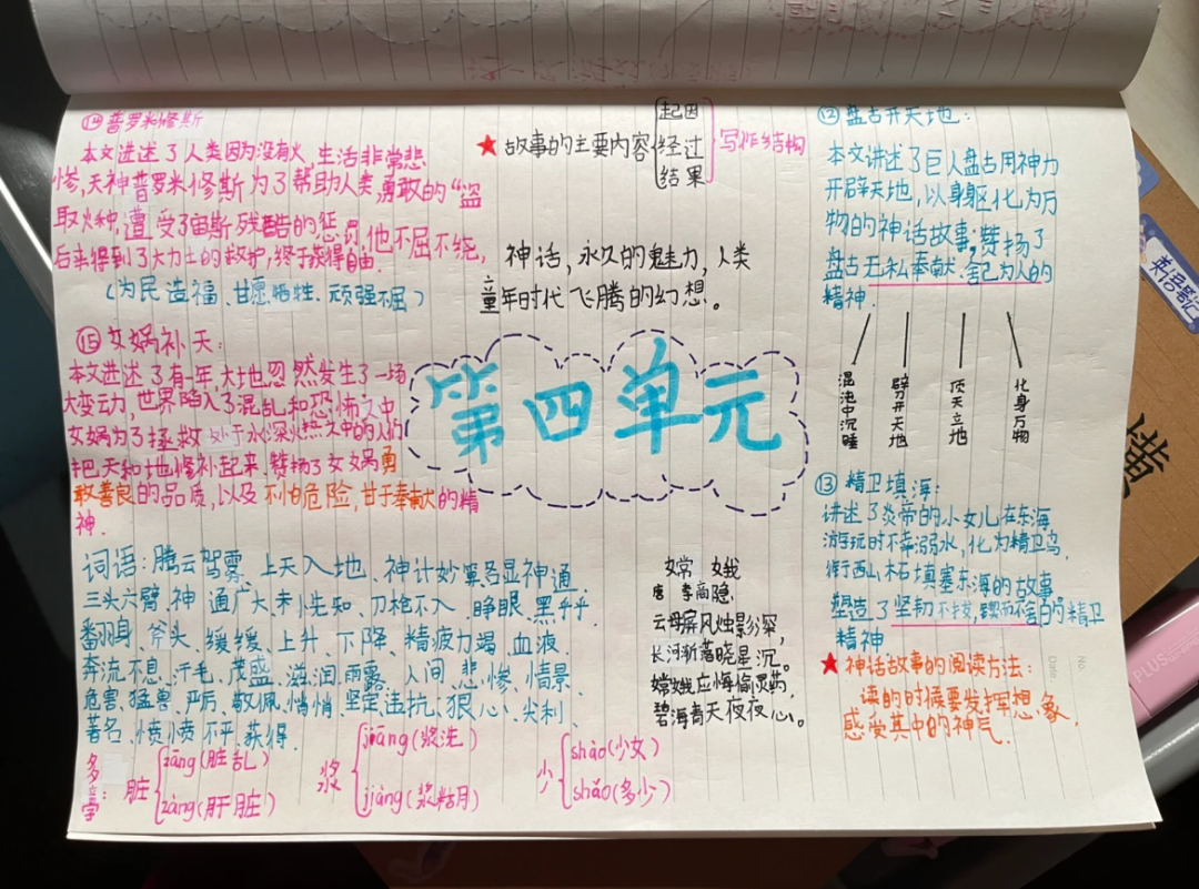 有时,我们还可以布置阅读作业。比如我按照本学期“快乐读书吧”所提出的阅读要求,分别推荐学生阅读《中国古代神话故事》《世界经典神话与传说》《希腊神话》《山海经》等, 学生从中不断拓展课外积累,更能从中感受古人对未知事物的想象和理解。我更是利用线上《喜马拉雅》APP,每日推送一到两则中外神话故事至微信群,丰富学生的居家生活的同时又能充实学生精神世界。