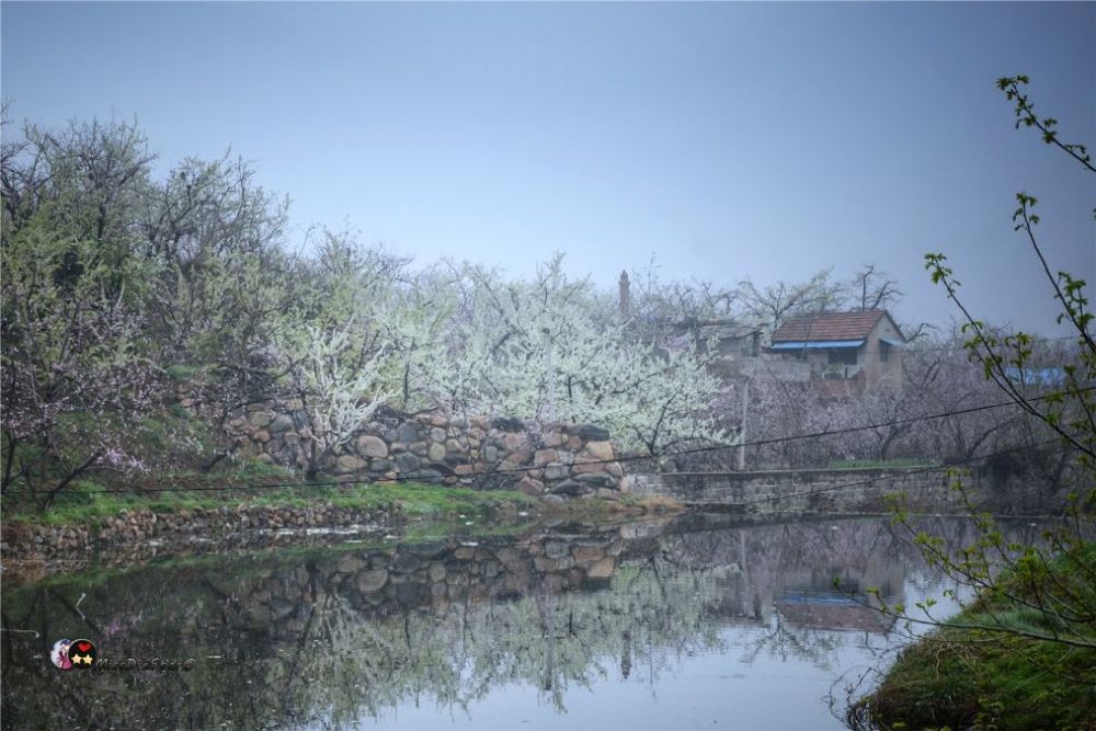 从胡同口进去,需要穿过一个建在山坡上的村庄。这个村子叫做莘庄,春天的莘庄,是个极其美丽的村落,原生态石头筑成的院墙,红瓦黑墙的普通民居中,却被桃花、梨花等包裹其中。此时此景,我脑海中浮现出来的就是陶渊明“晨兴理荒秽,带月荷锄归”的归园田居。