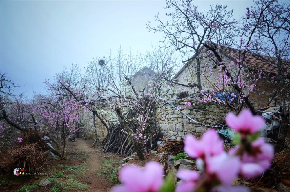 气温升得很快,花期比往年提早了很多。前几天刚拍的一棵杏花树,在一夜之间已然凋谢落满地,接着登场的桃花也花开争艳,粉嫩的桃花很漂亮,我的身边也种植着大量的桃树,相对于一片桃花林,我更向往在一处山坡上欣赏人文村落与自然花开的融合。