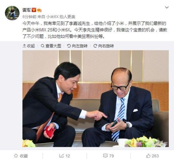 雷军见李嘉诚介绍小米手机 长和称对入股小米有兴趣