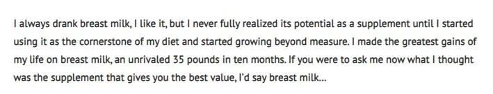 外国也有未开民智的人群,也有谣言满天的时候,一些人觉得母乳对增肌有帮助,主要是看中了其中的一些生长因子,比如IGF。