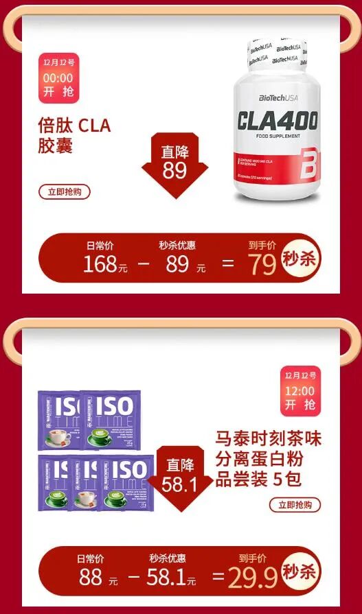 最后例行简说一下我们双十二的一些健身补剂活动。