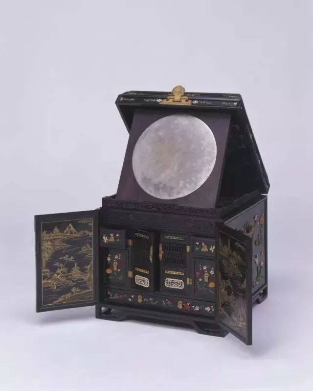 镜台,在古时称为“妆奁(lián)”,是古代妇女专用的梳妆盒或梳妆台。一个高大上的妆奁,整洁又大方,功能强大又可以根据材质及制作精细程度来显示身份,可以说再没有什么家具,比镜台更能牵动闺中女儿目光和情怀了。