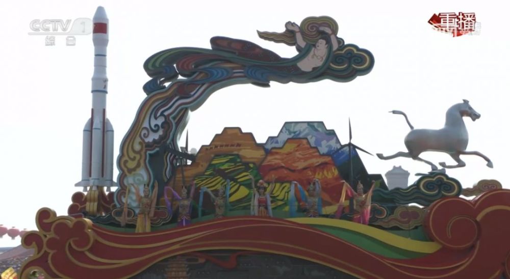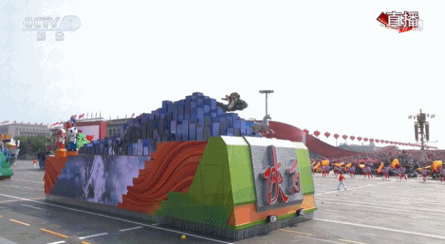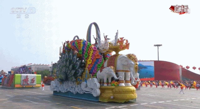 内蒙古彩车上,驰骋的骏马造型栩栩如生,神态矫健遒劲;“多彩贵州”彩车,描绘贵州实施大扶贫、大数据、大生态三大战略行动的美好蓝图;“美丽新疆”彩车,则象征着新疆各族儿女像石榴籽一样紧紧抱在一起。