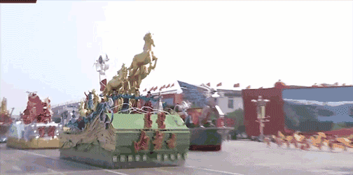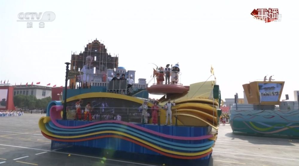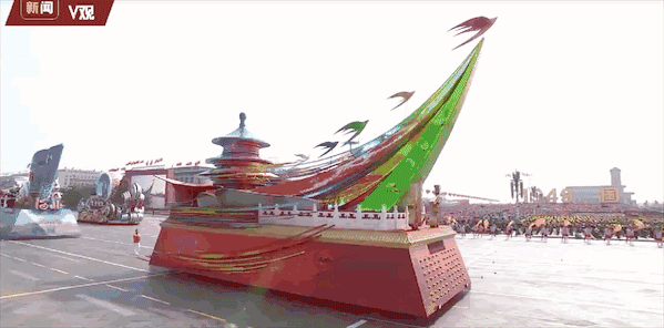 彩车上一望可知就是北京元素——天坛、城墙、雨燕、刚刚落成使用的新机场,以及集成电路、人工智能等高新技术产业.......他们展示着北京的城市定位:政治中心、文化中心、国际交往中心和科技创新中心。