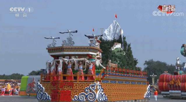“幸福西藏”彩车有三个突出特点:一是所展现的成就更为巨大。彩车上的新民居前面飞驰列车、欢快的老百姓载歌载舞的场景,集中体现了西藏各行各业快速蓬勃发展、各族人民安居乐业的美好情景。二是艺术表现的手法分量更重。彩车上飞翔的黑颈鹤、藏羚羊是青藏高原的独特物种,不仅代表着生态好,而且也代表着吉祥、祝福和感恩。三是寓意深刻的三面国旗。因为西藏特殊的战略地位,每一面国旗都有深刻的立意。此外,今年的西藏彩车还有一大亮点,车上有一处瀑布,是活水循环的真水。用雪山、原始森林和瀑布构成了一幅青山绿水的美丽画卷,凸显出了西藏的生态屏障战略地位。