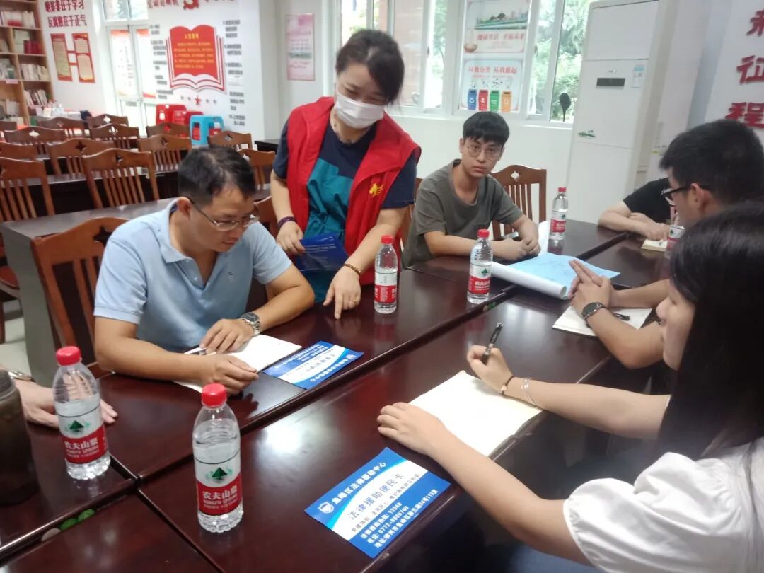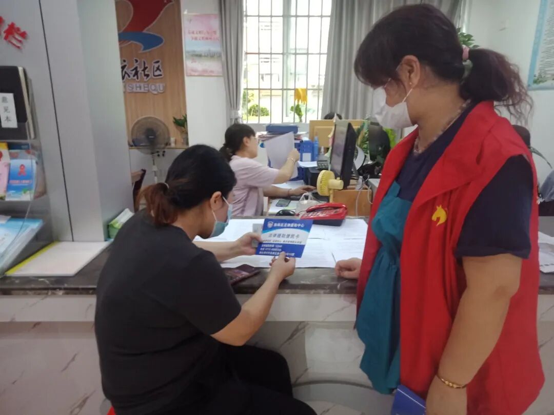 为进一步推进党史学习教育走深、走实、取得实效,努力为群众办实事,让法律援助这项民生工程惠及更多群众, 6月16日,柳依社区普法志愿者在本社区大厅对前来办事的群众开展“我为群众办实事,法律援助在行动”活动,宣传法律援助便民卡。