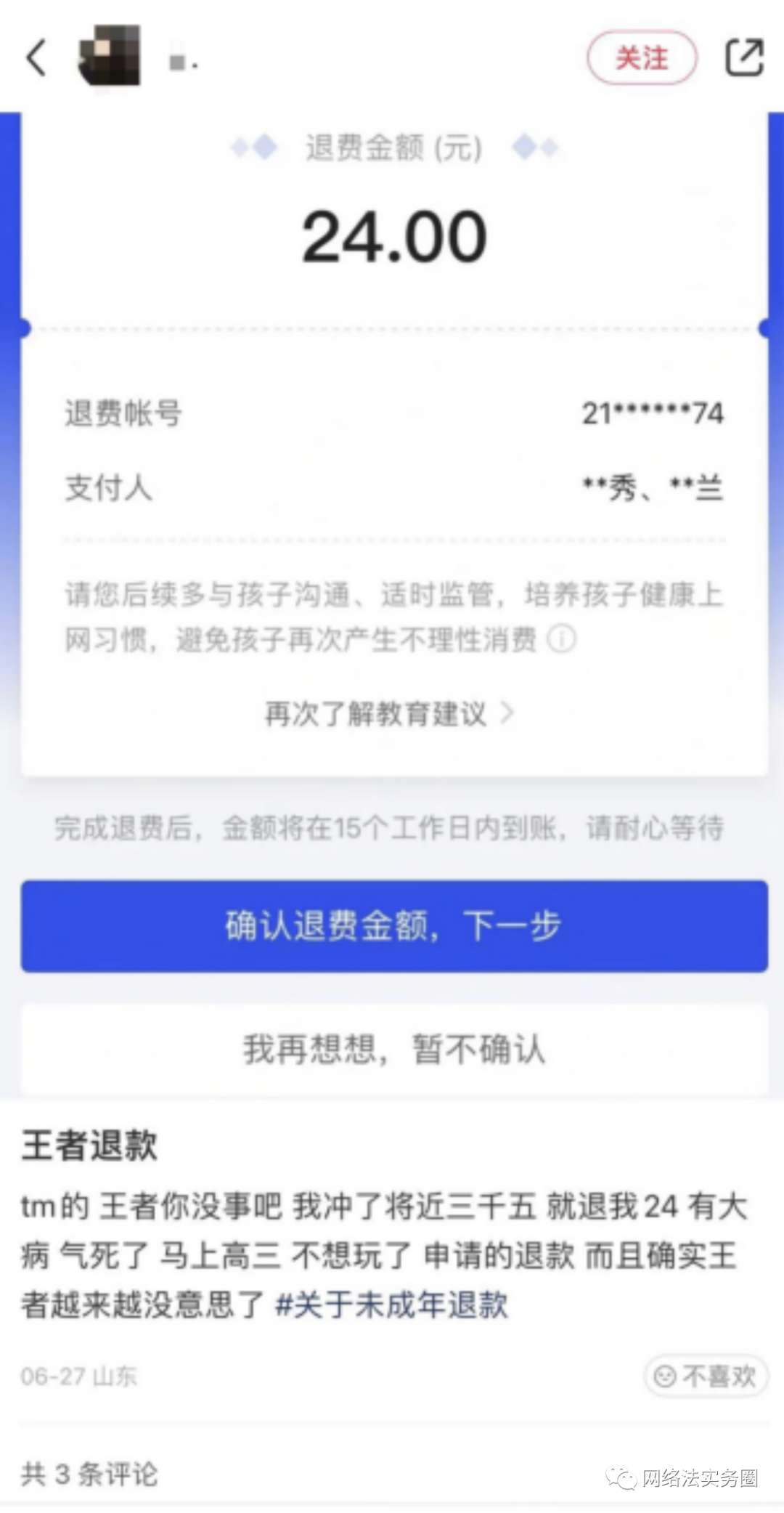 司法实践未成年人退款账号的实名认证高于法律要求