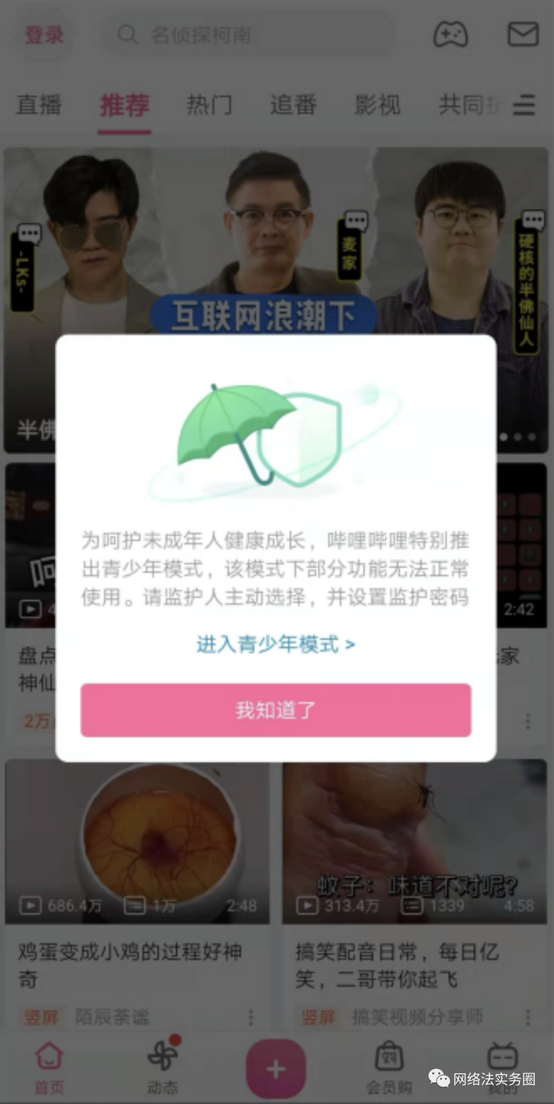 来源:B站青少年模式及亲子平台模式One
