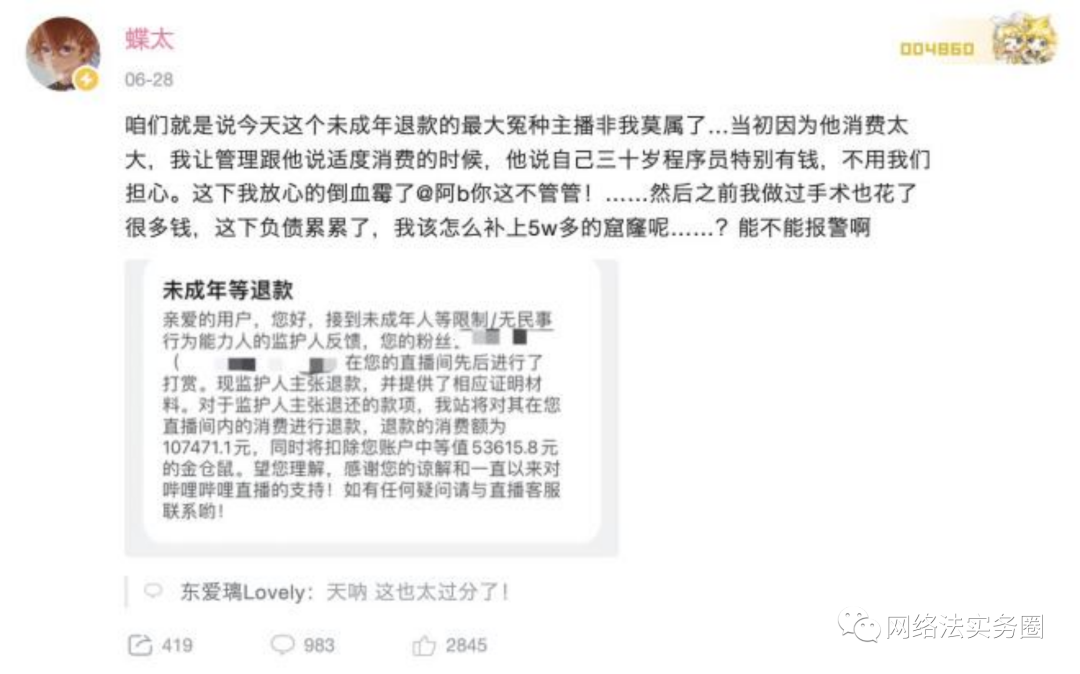 文 | 方巧娟6月28日晚间,B站部分虚拟主播陆续曝出遭遇未成年人退款事件,几乎在同一时间,他们收到了来自B站官方发出的未成年人退款通知。一夜间,众多底层中小虚拟主播几个月努力工作的成果付诸东流。