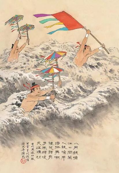溱洧河畔钟鼓交,踏青游人乐陶陶。