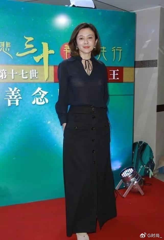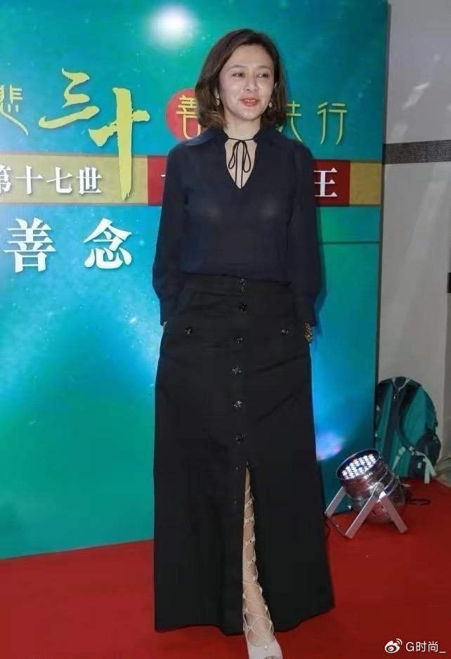 60岁关之琳不服老,穿透视衬衫秀丰腴身材,搭黑色开衩裙更优雅