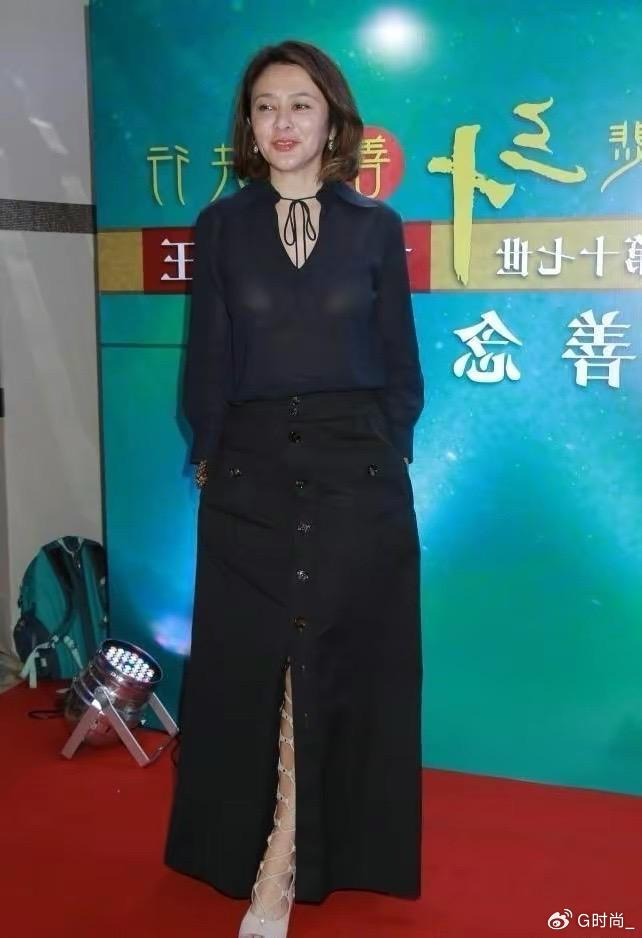 关之琳选择了一件黑色系的透视衬衫,这样的色彩与她的年龄定位还是比较相符的。相对于那些夸张又大胆的颜色,黑色系的透视衬衫更加神秘朦胧,驾驭起来难度系数也不是很高。