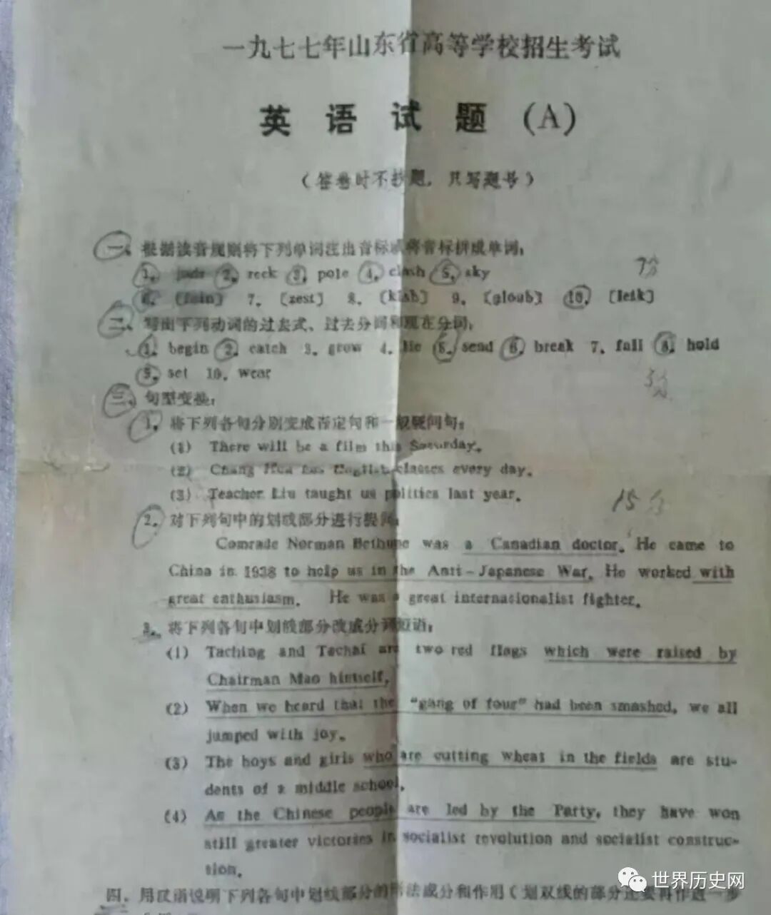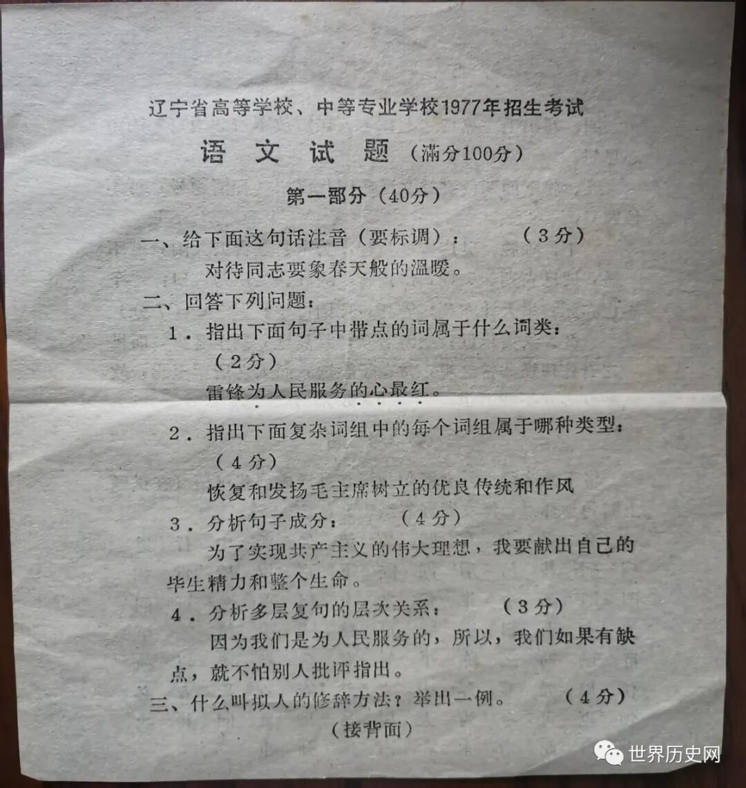 由于特殊的历史原因,1977年的高考试题在今天考生看来很简单,甚至大部分只有初中水平。但这就是真实的历史,毕竟高考中断10年,绝大多数考生的基础很薄弱,因此也就理解了当年的试题难度了。