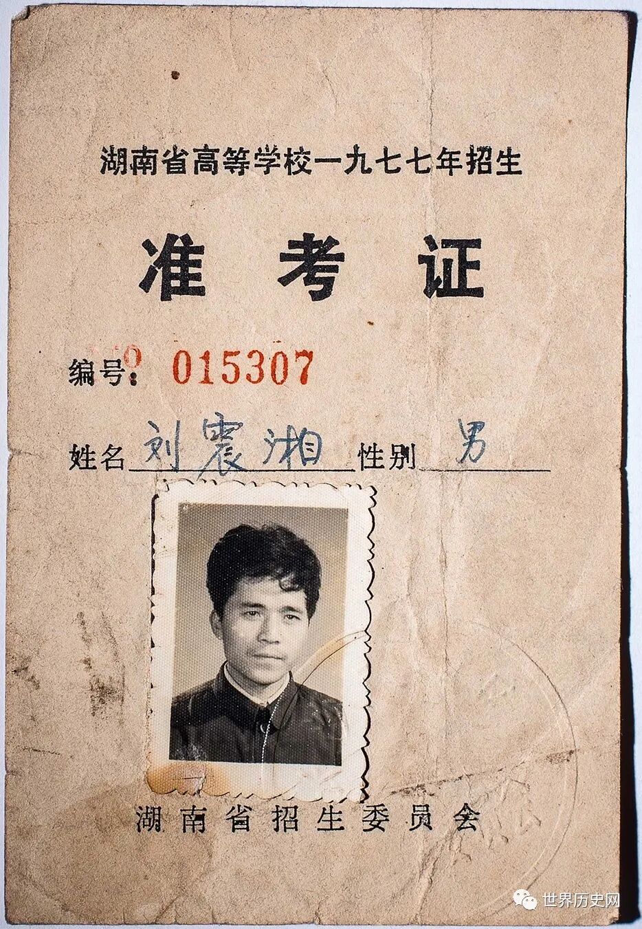 薄薄的纸片、黑白照片,简陋、简单是当年准考证的特点。一张 小小的准考证见证一个历史。