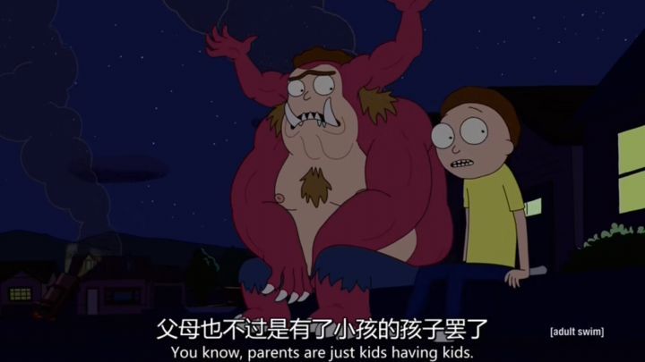 很多人爱把自己的性格缺陷怪罪在原生家庭:“因为打击式教育,所以我长大后才懦弱无能。”“因为太过宠溺,所以长大后接受不了挫折。""因为没有得到足够的关照,所以长大后总是跟恋人发生矛盾,想要更多的爱。"但是请你原谅啊,父母也是第一次当父母。如果做了什么错事,还请你原谅他们。毕竟,他们也只是个有了小孩的孩子罢了。瑞克和莫蒂落幕了,但是神奇姥爷和孙子的故事,却留给后人无限的遐想。就算Rick自私、粗暴、不着边际,但是他对morty的爱却是切切实实的。总是毫不留情地嘲笑外孙的瑞克,却也在回想起莫蒂小时候的样子时,眼含泪水。