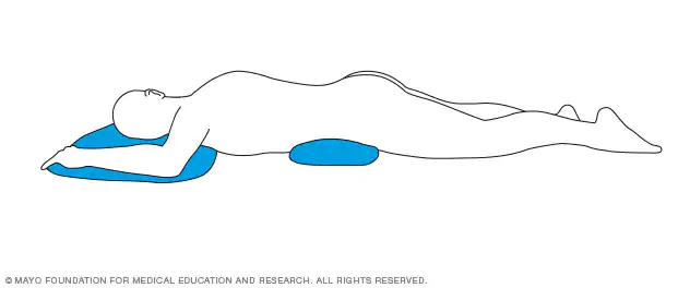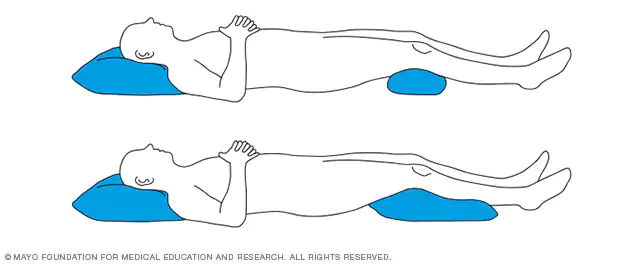 如果你喜欢侧卧:双膝微弯,但不要蜷紧贴向胸部。在双腿之间夹一个枕头可以减轻背部和脊柱的压力。