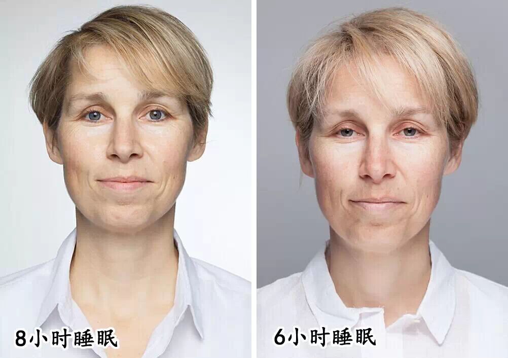 这两天,一组对比照让很多人印象深刻!英国《每日邮报》报道,46岁的Sarah Chalmers参加了英国伦敦的一个睡眠学校的实验。下面是她连续五天只睡6个小时与睡满8个小时的面容对比照。