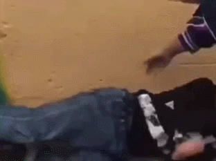 被摔倒在地上后男孩站起来又被连扇了几个耳光,当场被扇懵了。