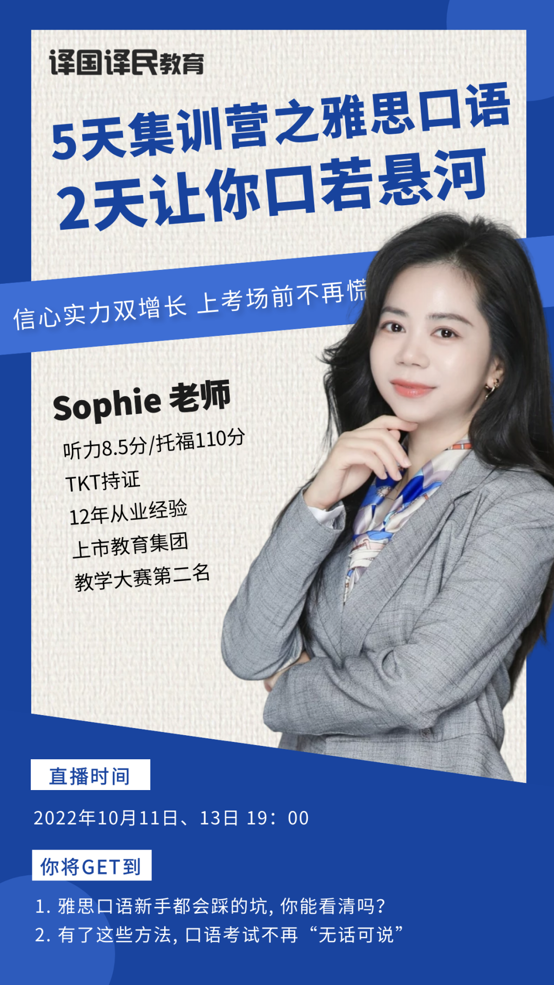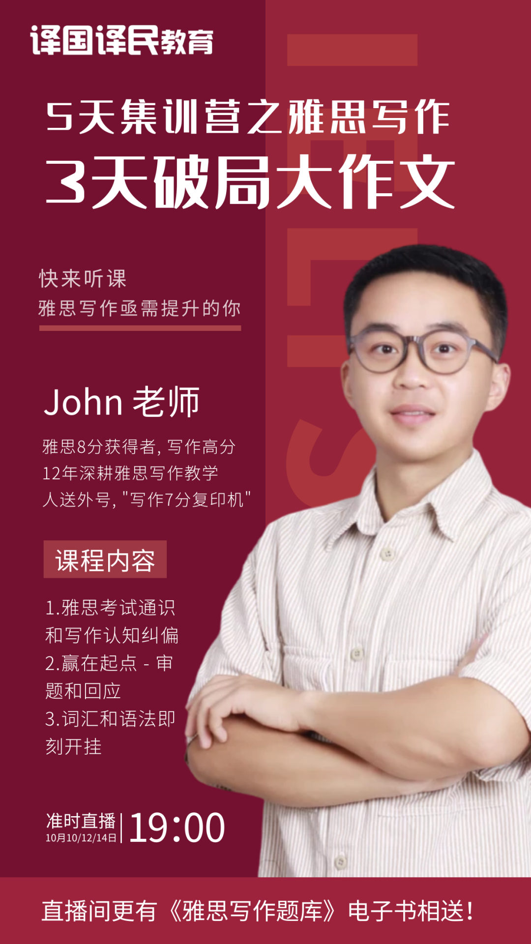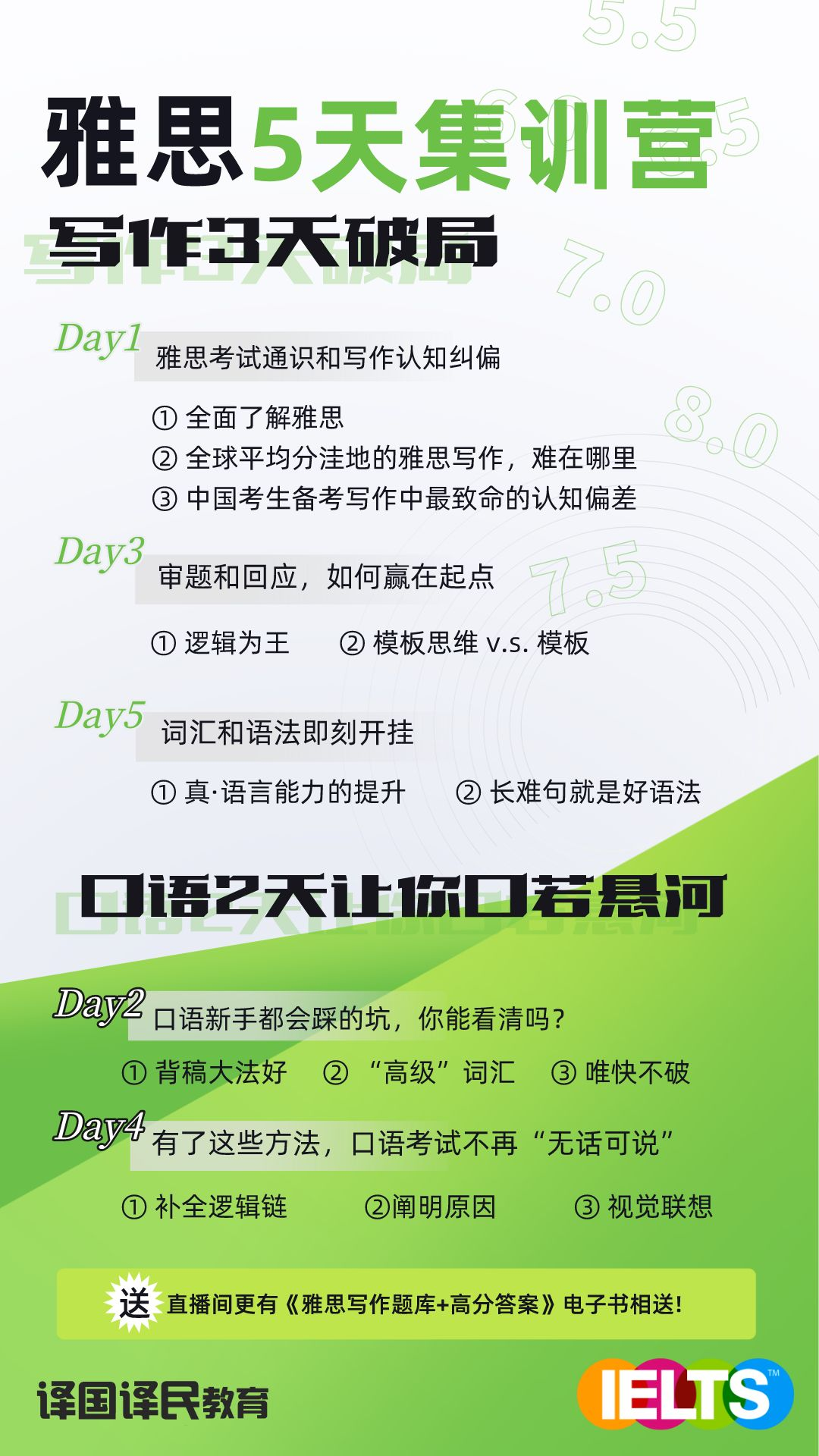 看完此文的你,如果也想为了出国提早备考,也想“以考带学”或者“证多不压身”,那你可太幸运了!「译国译民雅思」金秋特别课程 - 雅思5天训练营 即将开课!