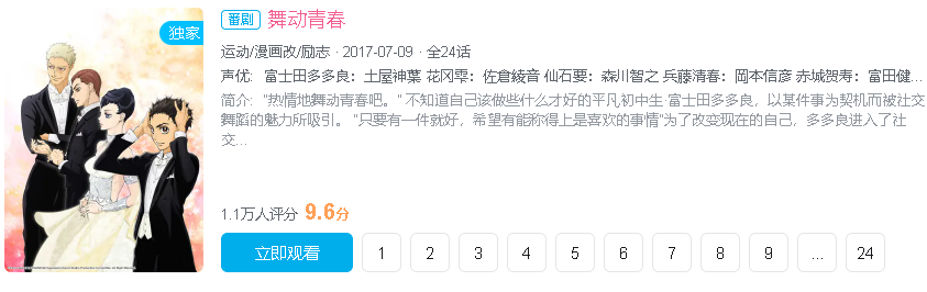 我看了一下,看到有人在这部动漫的弹幕里写道“我练习了交际舞好几年,真的有那么夸张吗”,其实,我个人平时喜欢健身、乒乓球、跑步一类的,说真的,我特别想反问他一句,“你真的热爱吗”,我始终认为如果能真的喜欢投入一件事,你是会发自内心的享受这件事。